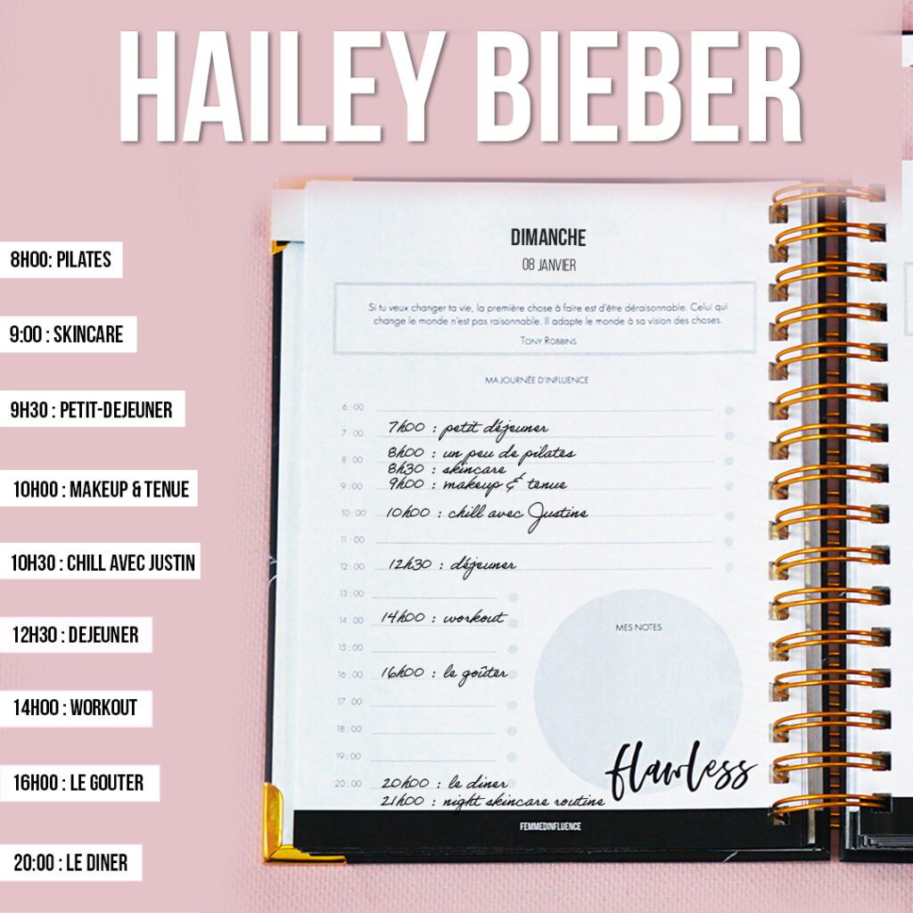 En notant la daily routine d’Hailey dans Le Lady Planner 2023, on peut dire qu’Hailey suit un programme alimentaire stricte et une routine sportive soutenue. Elle apporte aussi beaucoup d’importance à sa peau – raison pour laquelle elle a créé sa propre marque de cosmétiques Rhodes. Bref. Si tu veux avoir la peau et le corps de Hailey, voici toutes ses astuces pour manger équilibré et sans gluten, ainsi que ses conseils skincare.